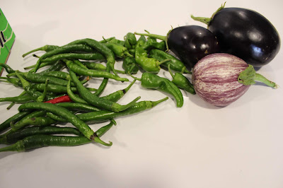 Que boa salada que esses tomates e esses pimentos picantes que é dificil de encontrar e eu gosto tanto!