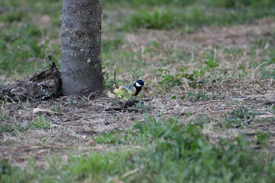 Carbonero en el jardín. Visitantes del jardín.