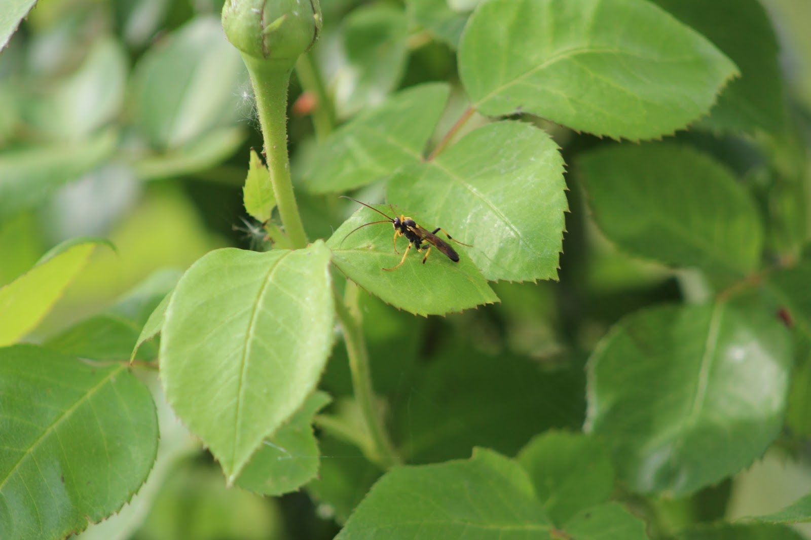 EliminarYour rose plant looks so healthy! Good capture of the wasp.
