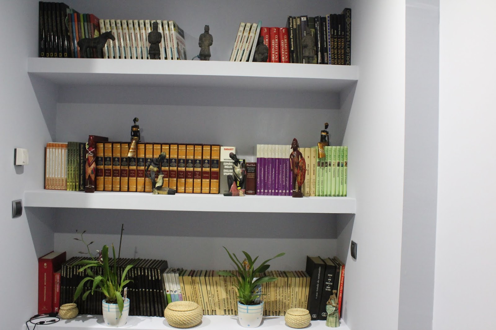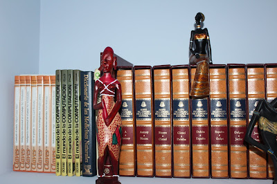 Que bonita estantería tienes , toda ella llena de libros , y las figuras son muy bonitas , y más si son de etnia africana , ami me gustan mucho , te deseo una feliz noche besos de flor.